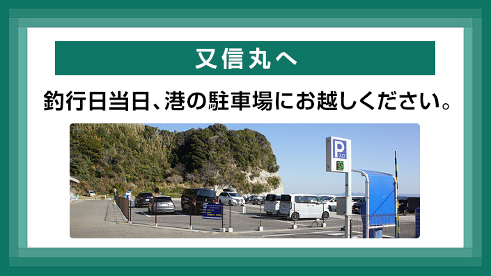 釣行日当日は、集合時間(出船時間の1時間前)迄には松輪間口港の有料駐車場にお越しください。